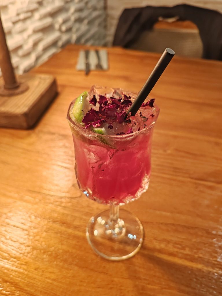 Mezcal, citron vert, cointreau, sirop d'hibiscus
