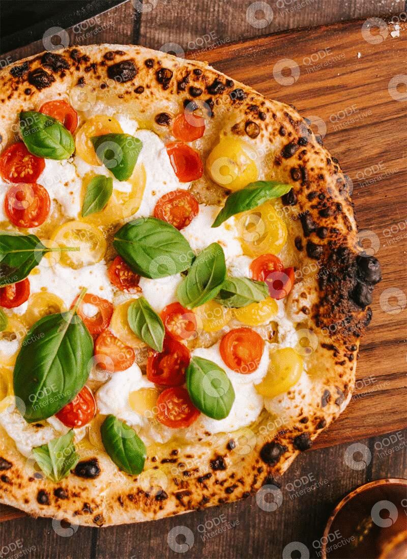 mozzarella, tomatoes, black olives, caramelized onion, salami, ricotta